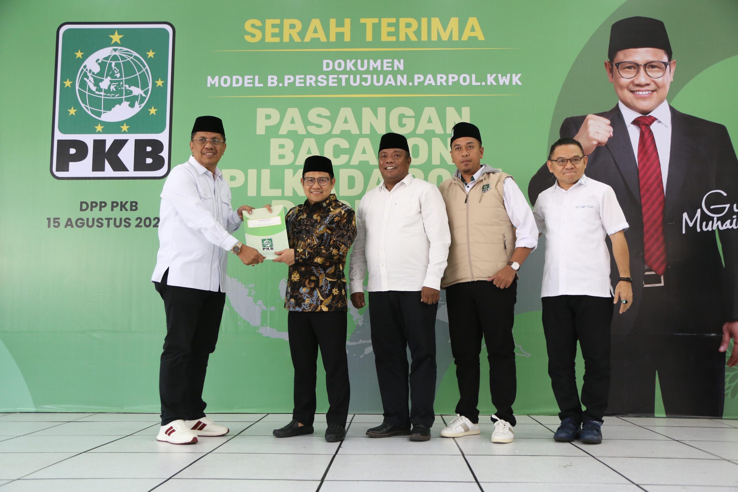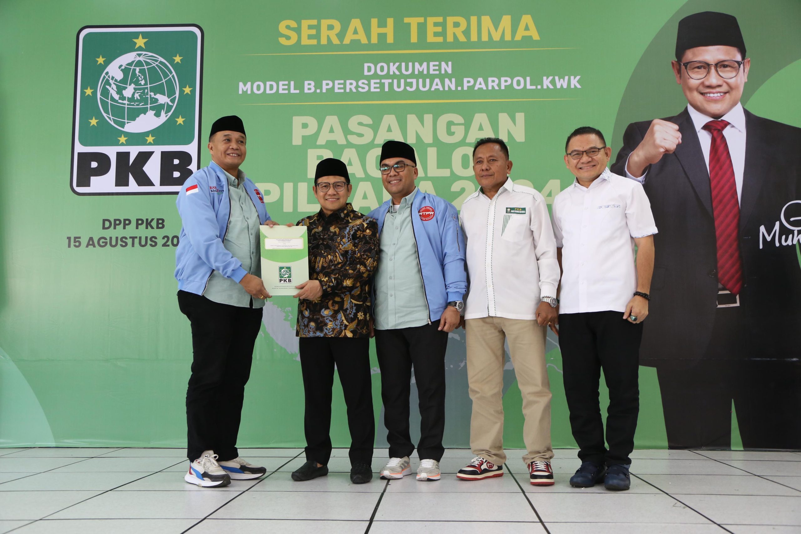 Dokumen model B1-KWK itu diserahkan langsung oleh Ketua Umum DPP PKB Abdul Muhaimin Iskandar kepada 9 pasangan bakal calon di Aula Lantai 4 Kantor DPP PKB, Jalan Raden Saleh Nomor 9, Jakarta Pusat, Kamis (15 Agustus 2024).