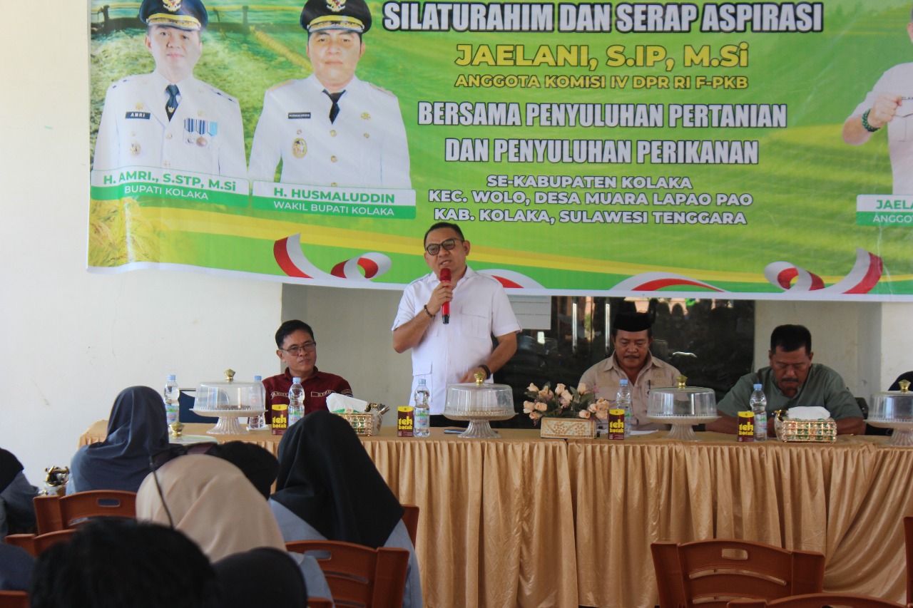 KOLOMRAKYAT.COM: KOLAKA – Anggota Dewan Perwakilan Rakyat Republik Indonesia (DPR RI) Komisi IV, Jaelani menggelar reses ke Kabupaten Kolaka, pada Jumat, 25 Juli 2025. Dalam agenda utamanya, Jaelani bertemu langsung dengan para penyuluh pertanian dan perikanan se-Kabupaten Kolaka untuk menyerap aspirasi dan mendengarkan langsung berbagai tantangan serta kebutuhan di lapangan.