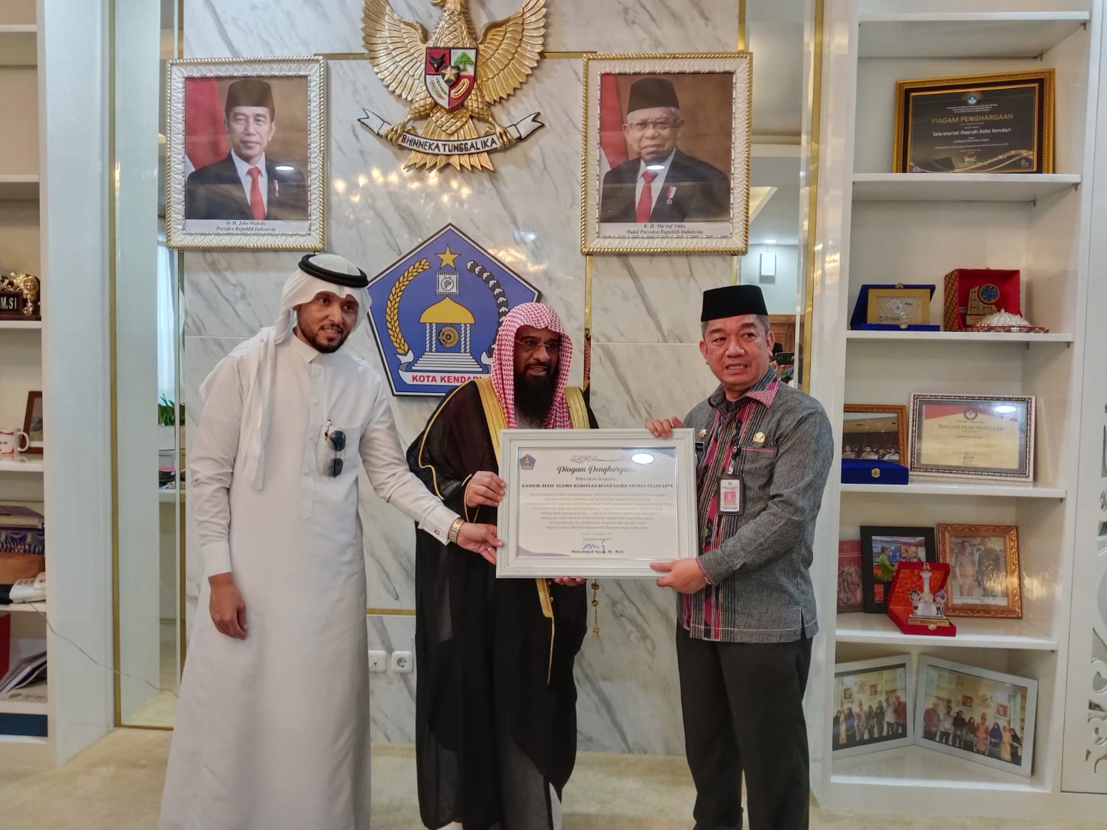KOLOMRAKYAT.COM: KENDARI – Atase Agama Kedutaan Saudi Arabia menyambangi kantor Wali Kota Kendari, Kamis (5/9/2024). Kedatangan rombongan Atase ini disambut langsung oleh Sekertaris Daerah Kota Kendari, Ridwansyah Taridala bersama para Asisten dan sejumlah kepala OPD.