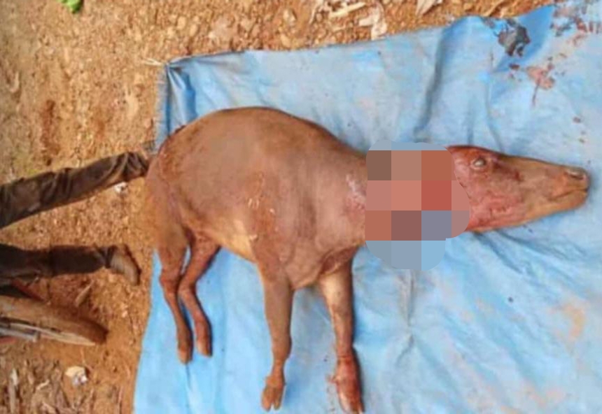 KOLOMRAKYAT.COM: KENDARI – Beredar foto, hewan Endemik Sulawesi Tenggara Anoa mati di bunuh. Diduga hewan ikon Sulawesi Tenggara ini mati dibunuh dengan cara disembelih (gorok).