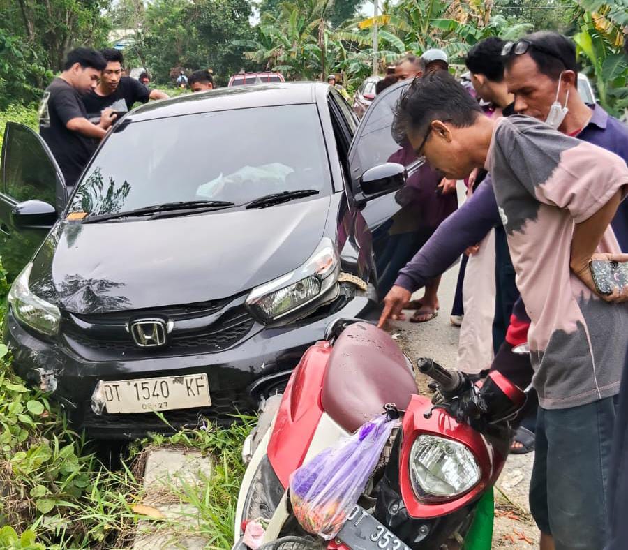 Sesampainya di lokasi kejadian, pengemudi mobil diduga hilang kendali setelah berupaya menghindari jalan berlubang. Mobil kemudian masuk ke jalur sepeda motor hingga terjadi tabrakan.