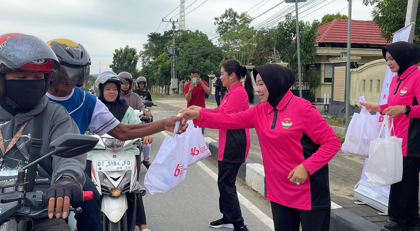 KOLOMRAKYAT.COM: KENDARI – Bhayangkari Daerah Sulawesi Tenggara menggelar kegiatan berbagi takjil kepada para pengendara yang melintas di depan Rumah Jabatan Kapolda Sulawesi Tenggara, Rabu (25/2/2026). Kegiatan sosial ini dilaksanakan dalam rangka menyemarakkan bulan suci Ramadan 1447 Hijriah sekaligus peringatan Hari Ulang Tahun (HUT) Yayasan Kemala Bhayangkari ke- 46 Tahun 2026
