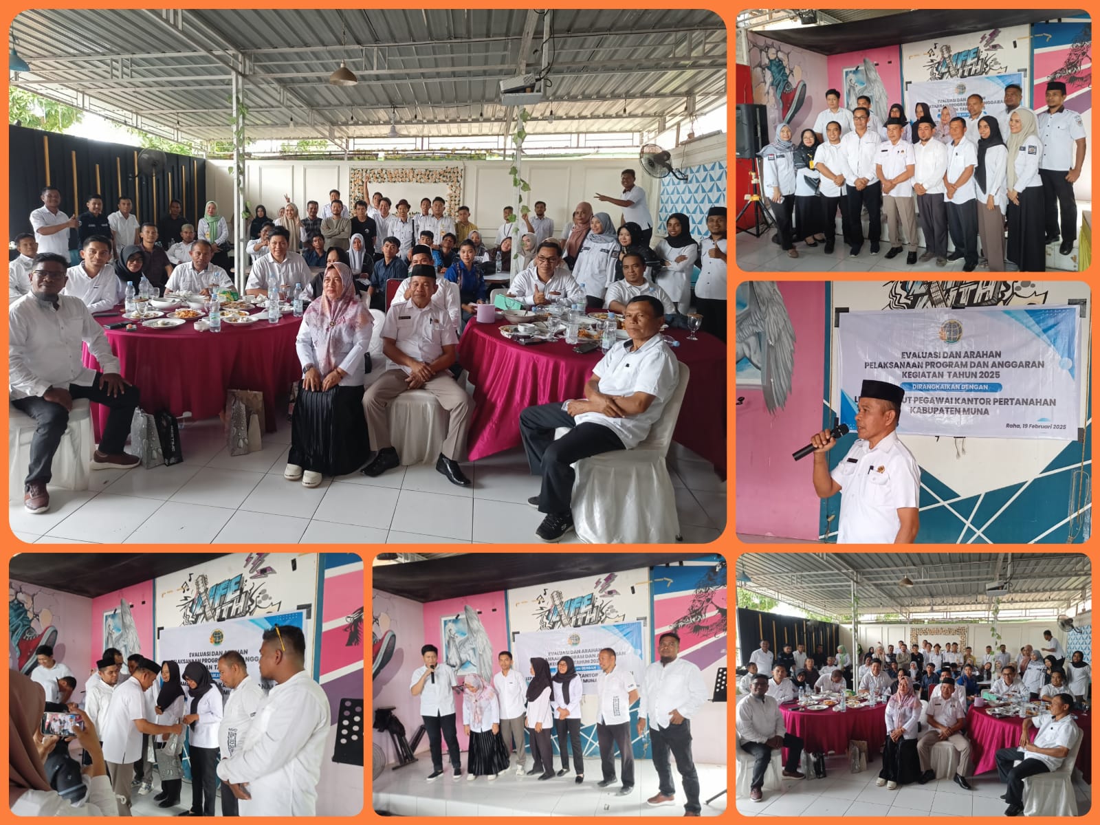 KOLOMRAKYAT.COM: MUNA – Badan Pertanahan Nasional (BPN) Kabupaten Muna melakukan rapat merespons cepat terkait efesiansi anggaran yang dilakukan oleh BPN Pusat dalam pelaksanaan program dalam anggaran Tahun 2025, di salah satu rumah makan di Kota Raha, Rabu (19 Februari 2025).