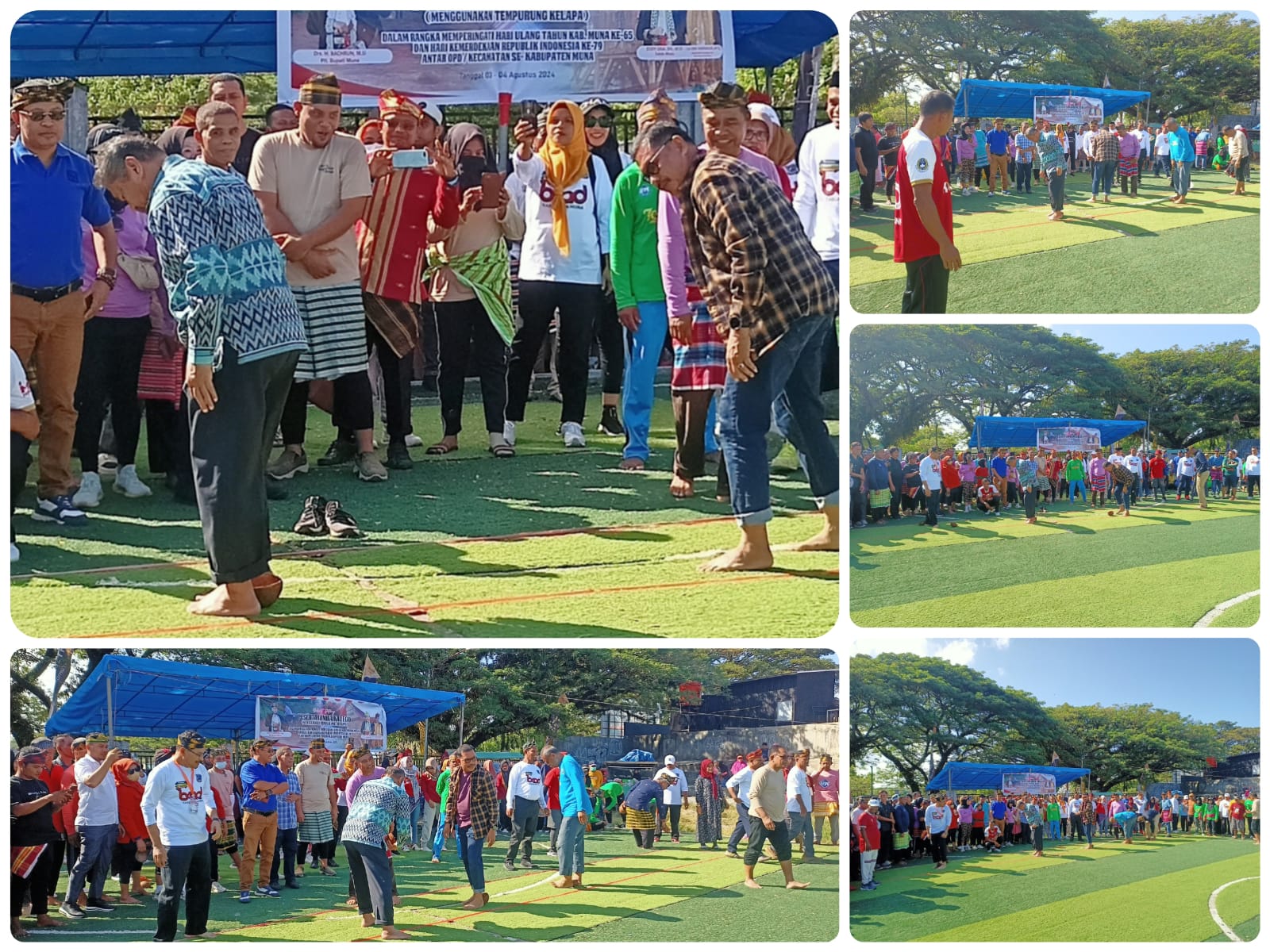 KOLOMRAKYAT.COM: MUNA – Pelaksana Tugas (Plt) Bupati Muna, Bachrun Labuta membuka secara resmi kegiatan Lomba Permainan Tradisional Muna dari Tempurung Kelapa, biasa dikenal dengan nama Kalego yang dilaksanakan di Taman Langit-Langit Kota Raha, Sabtu (3 Agustus 2024).