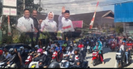 Di tempat itu, mereka lebih dulu menggelar doa bersama para relawan. Selanjutnya, ratusan kendaraan baik roda dua, roda empat, dan roda enam yang telah siap sejak pagi iring-iringan mengawal kedua pasangan itu.