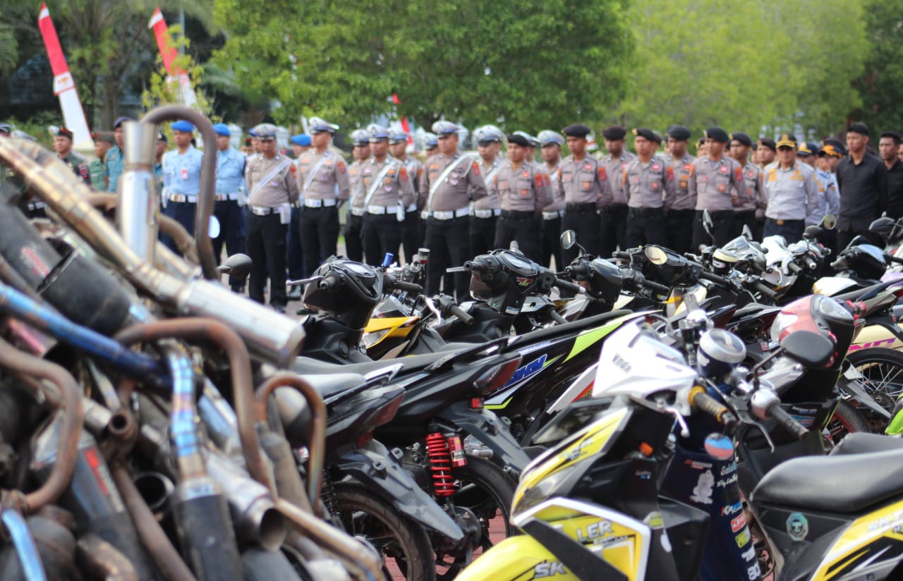 Kepolisian Daerah (Polda) Sulawesi Tenggara melalui Dirlantas Polda secara resmi memusnahkan sebanyak 735 knalpot brong hasil penindakan selama pelaksanaan Operasi Patuh Anoa 2025.