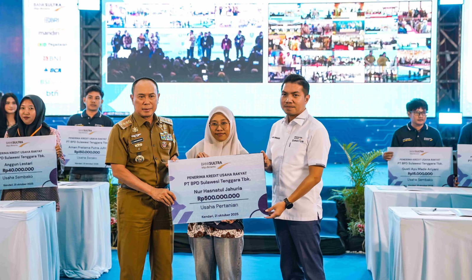 KOLOMRAKYAT.COM: KENDARI – Bank Sultra berperan aktif sebagai sponsor utama di Sulawesi Tenggara dalam kegiatan Akad Massal Kredit Usaha Rakyat (KUR) bagi 800.000 debitur dan peluncuran Kredit Program Perumahan (KPP) secara nasional yang digelar di Aula Bahteramas, Kompleks Kantor Gubernur Sulawesi Tenggara, Selasa (21/10/2025).