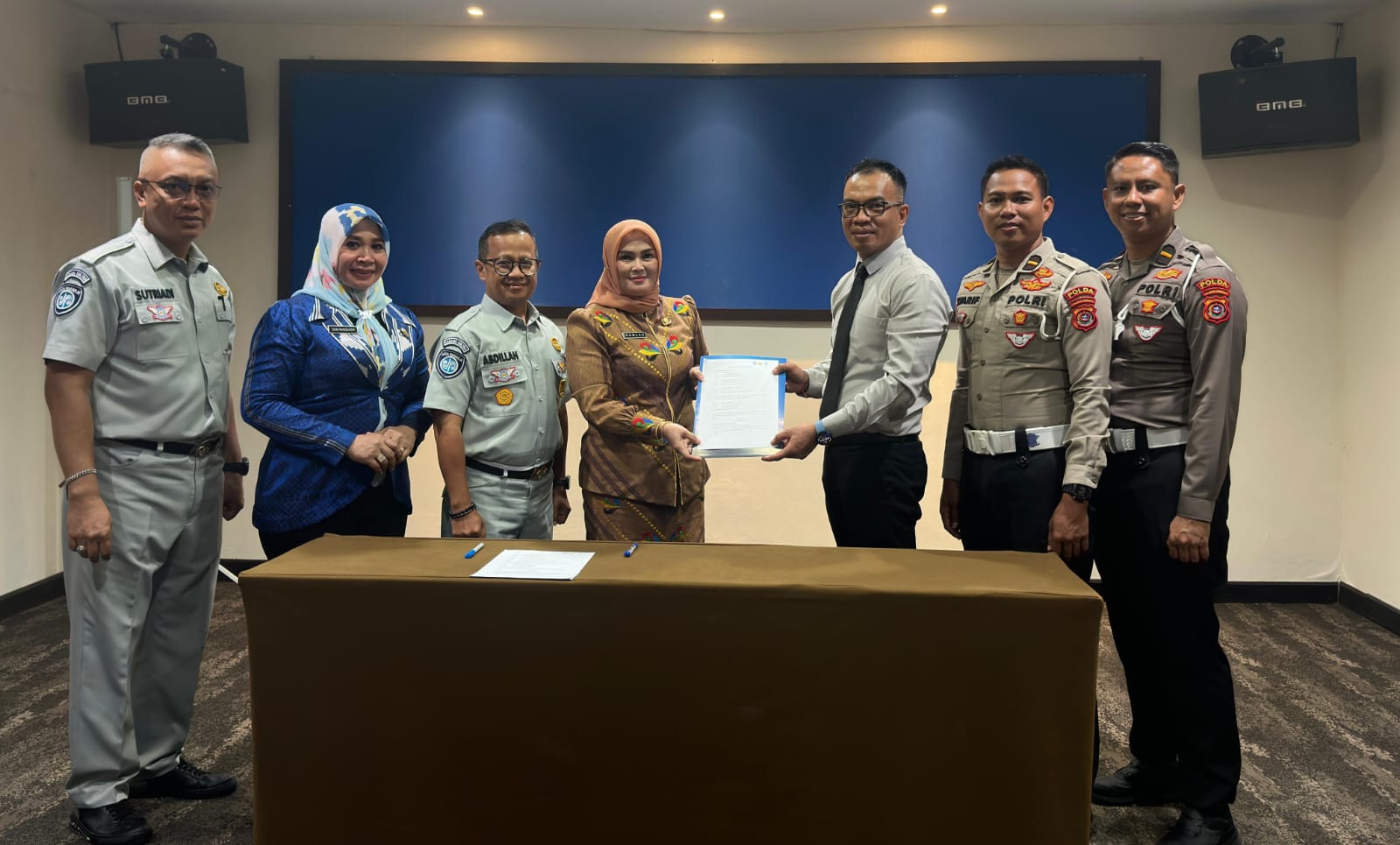 Penandatanganan dilakukan oleh Kepala UPTB Samsat Kota Kendari, Ramlah, Penanggung Jawab Jasa Raharja Samsat Kendari, Sutriadi Tombili, dan Paur STNK Samsat Kendari yang diwakili oleh Pamin III Sie STNK, Syarifuddin. Penandatanganan disaksikan oleh General Manager Hotel Claro, Syahrir Ramadan, dan Kepala Jasa Raharja Cabang Sulawesi Tenggara, Abdillah.