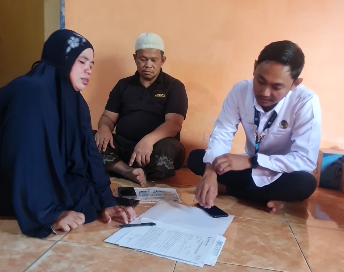 Petugas Jasa Raharja Cabang Sultra, Andi Ardian Syahruddin, sigap melaksanakan survei ahli waris korban melalui sistem jemput bola. (Foto: Ist/KR)
