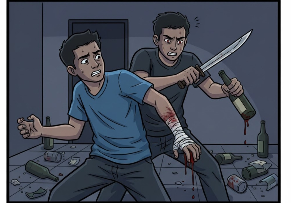 Beruntung, MCA yang setengah sempoyongan akibat pukulan botol di kepala masih sigap menahan serangan sajam pelaku. Namun, lutut dan telapak tangan kanan korban terluka akibat sabetan sajam pelaku sebelum melarikan diri.