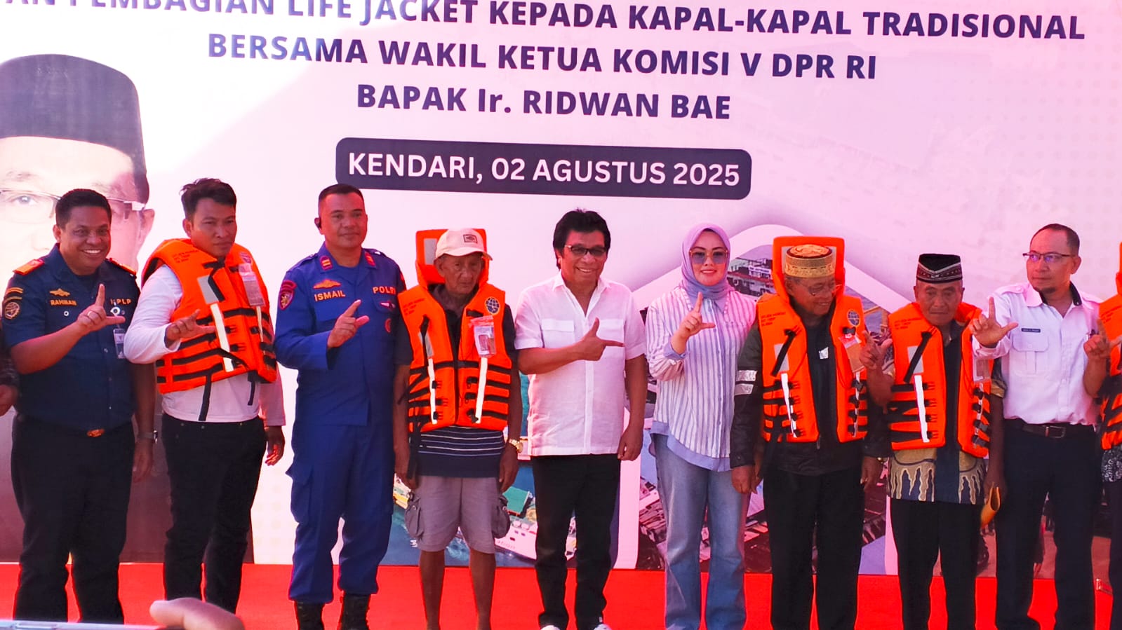 KOLOMRAKYAT.COM: KENDARI – Dalam rangka meningkatkan keselamatan pelayaran laut, Anggota Komisi V DPR RI Ridwan Bae, Balai Pengelola Transportasi Darat (BPTD) Kelas IIA, dan Kantor Kesyahbandaran dan Otoritas Pelabuhan (KSOP) Kelas IIA Kendari berkolaborasi lintas sektor melakukan sosialisasi keselamatan pelayaran sekaligus pembagian Life Jaket kepada kapal-kapal tradisional, Sabtu (2/8/2025).