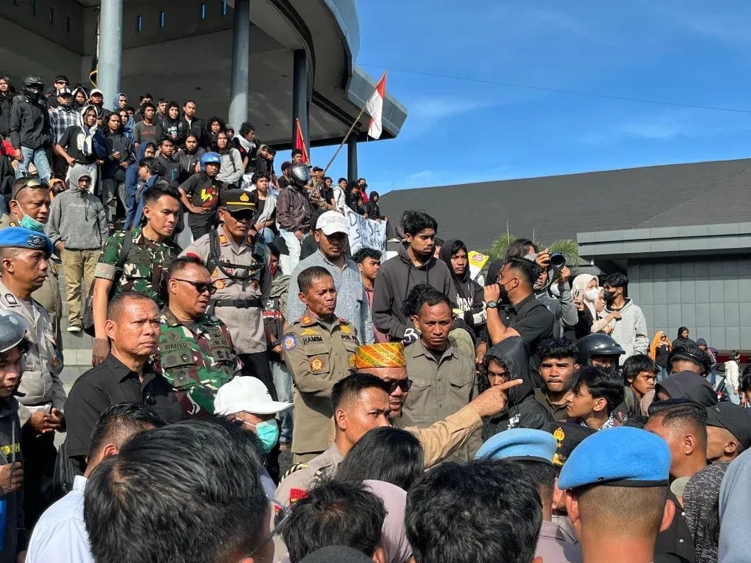 KOLOMRAKYAT.COM: KENDARI – Aksi unjuk rasa ribuan massa dari berbagai elemen masyarakat dan mahasiswa beberapa hari ini dan di kantor DPRD Provinsi Sulawesi Tenggara (Sultra) sebagai puncak aksi, pada Senin, 1 September 2025 kemarin menuntut kenaikan pajak dan tunjangan anggota DPR RI, berjalan kondusif dan aman. Hal ini tidak terlepas dari pengawasan dan pengamanan ketat prajurit atau anggota TNI dari Korem 143/HO dan kepolisian.