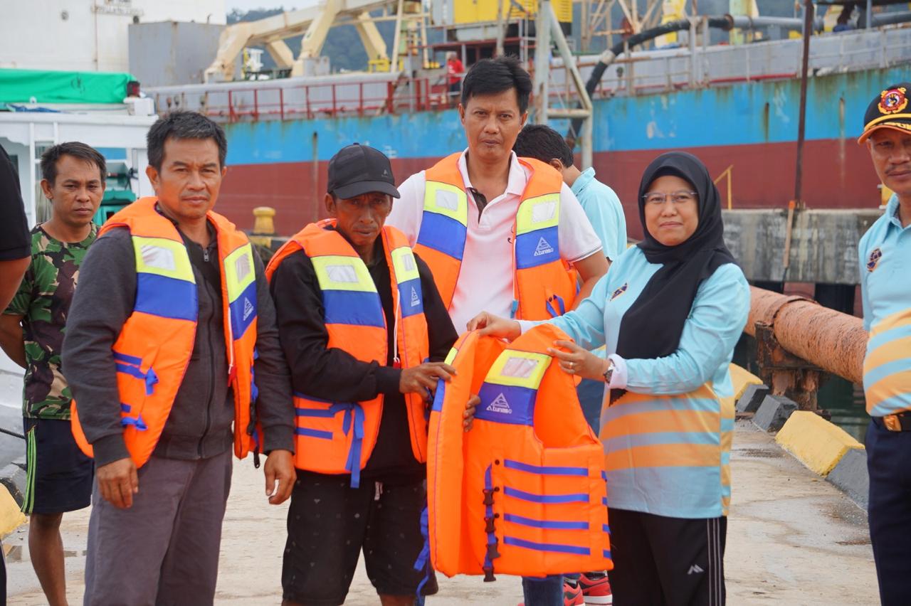 “Kita membagikan life jacket untuk kapal-kapal dengan ukuran GT di bawah 7 dan melakukan edukasi langsung agar masyarakat terbiasa menggunakan baju pelampung dan mengutamakan keselamatan dirinya,” pungkasnya.