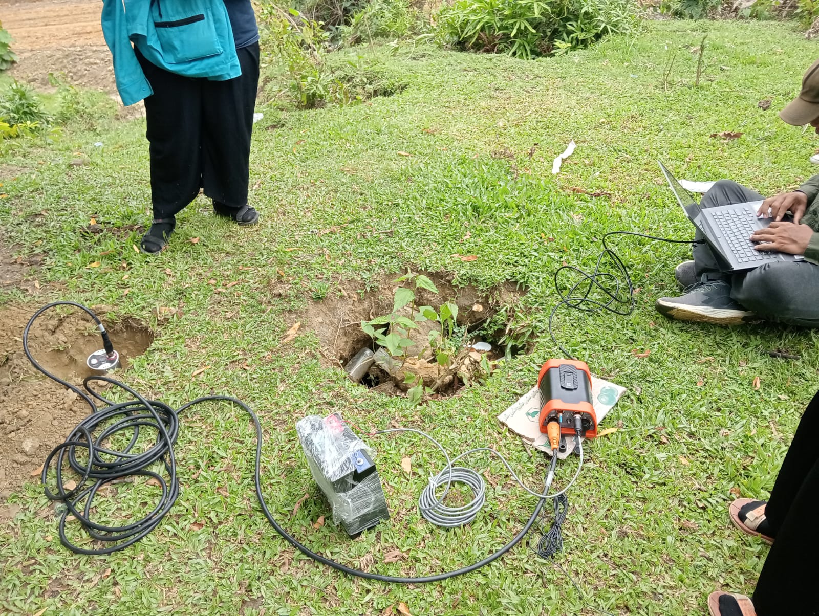 Pengukuran getaran tanah dengan pihak BMKG saat edukasi peningkatan kapasitas di Kecamatan Pondidaha. (Foto: Ist/KR)