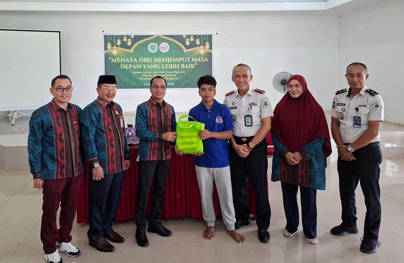 KOLOMRAKYAT.COM: KENDARI – Berfokus pada pembangunan karakter dan harapan untuk masa depan, Majelis Ulama Indonesia (MUI) Provinsi Sulawesi Tenggara melalui Komisi Hukum dan Hak Asasi Manusia (HAM) menggelar kegiatan penyuluhan agama dan hukum bagi anak binaan di Lapas Anak Kendari, pada Rabu (28/1/2026).