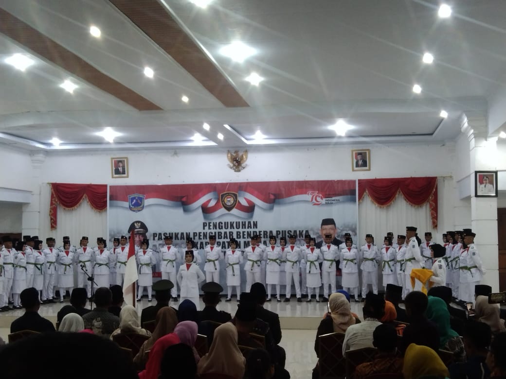 Pengukuhan anggota Paskibraka dipimpin langsung oleh Sekertaris Daerah (Sekda) Muna, Eddy Uga mewakili Plt Bupati Muna Bachrun Labuta didampingi Asisten I Setda Muna La Ode Safei, Asisten III Asmadi Teno, dan dihadiri para kepala OPD, Pelatih dan Purna Paskibraka.
