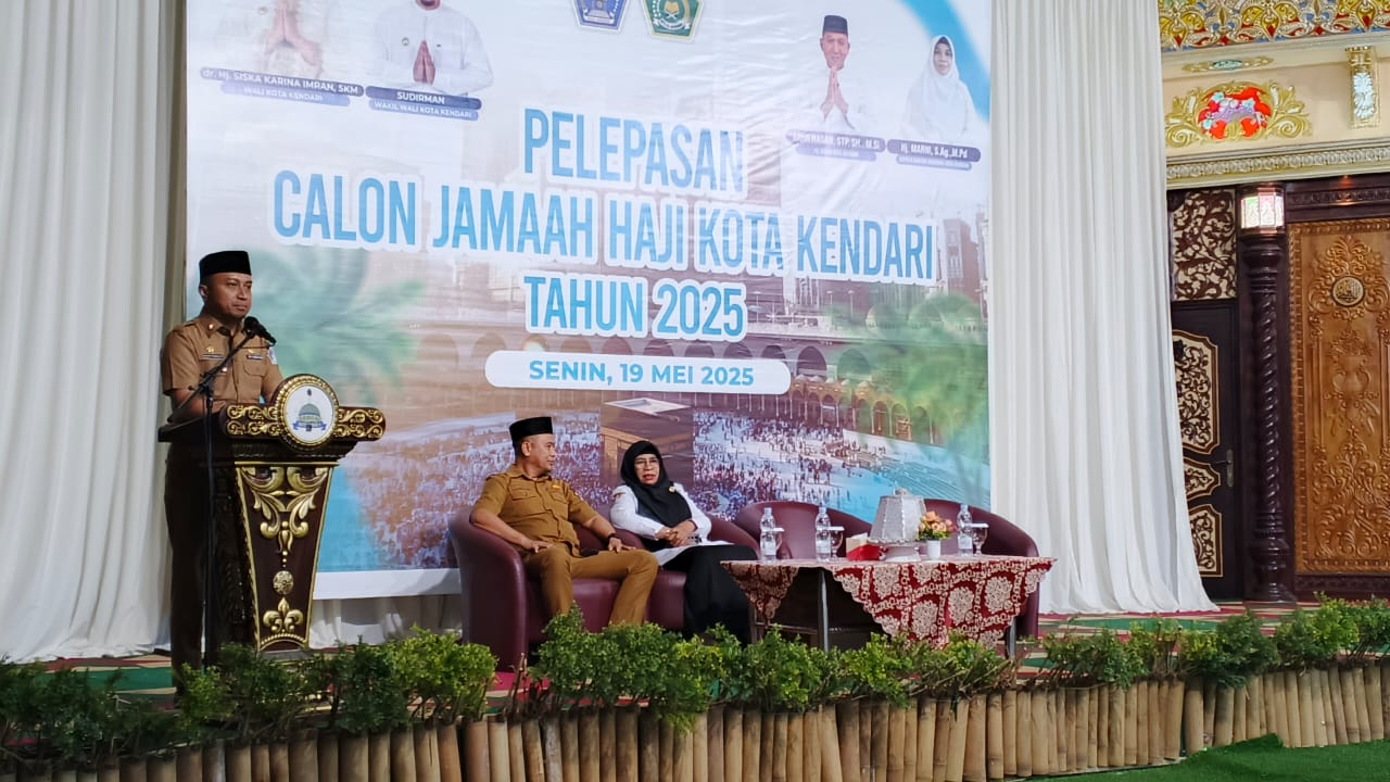 KOLOMRAKYAT.COM: KENDARI – Wali Kota Kendari Siska Karina Imran diwakilkan kepada Asisten I Maman Firmansyah secara resmi melepas keberangkatan 562 orang calon jemaah haji asal Kota Kendari menuju ke Makkah, Arab Saudi, untuk menunaikan ibadah haji Tahun 1445 Hijriah/2025 Masehi, Senin (19/5/2025).