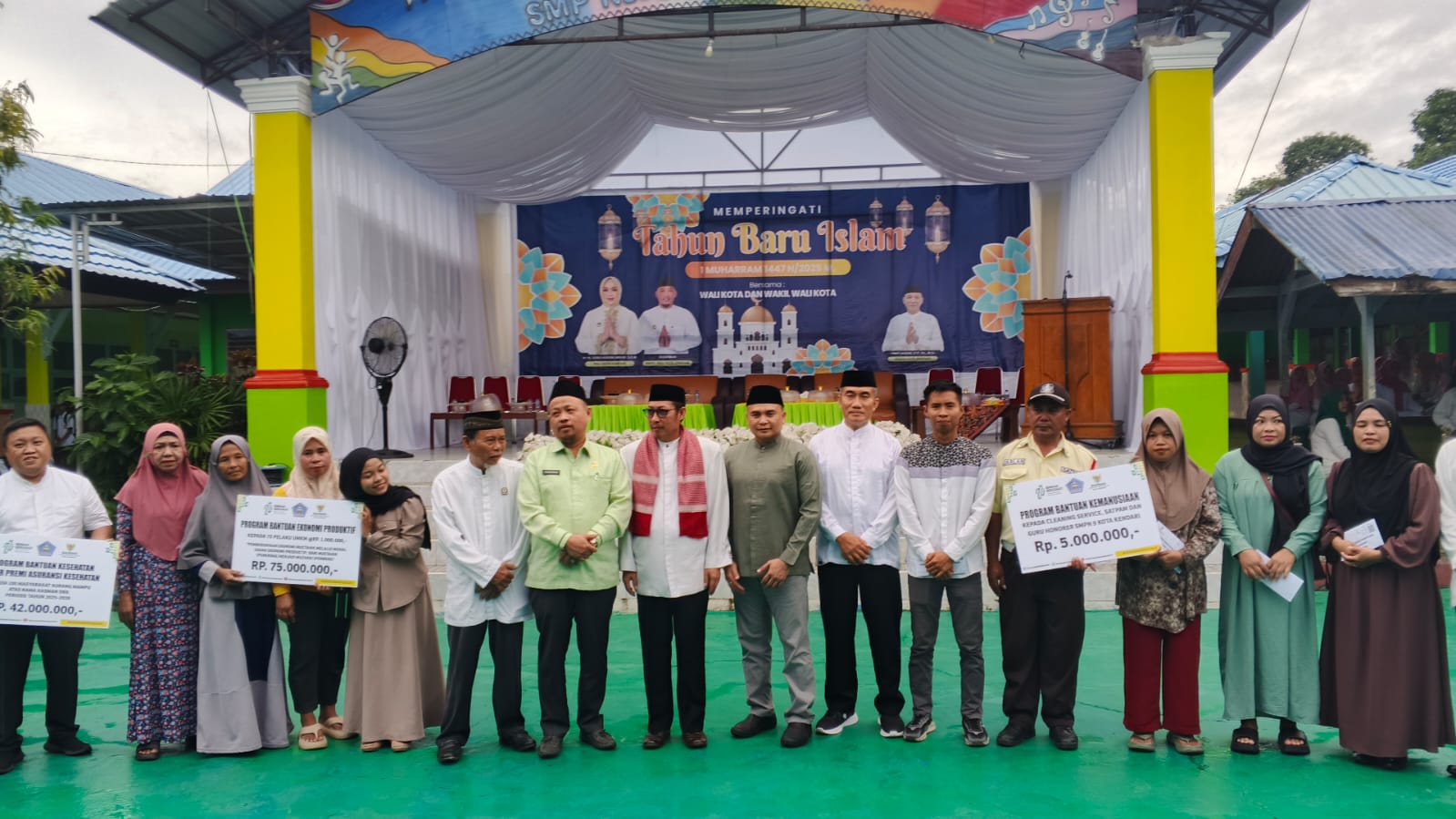 KOLOMRAKYAT.COM: KENDARI -Pemerintah Kota Kendari melalui Bagian Kesejahteraan Rakyat (Kesra) Sekertariat Daerah merayakan peringatan Tahun Baru Islam 1 Muharram 1447 Hijriah dengan penuh hikmat di SMPN 9 Kendari, Jumat (27/6/2025). Peringatan yang dihadiri oleh Kepala Dinas Pendidikan, Kepala Baznas Kota Kendari, MUI, Forkopimda, para guru, dan siswa-siswi SMPN 9 Kendari ini tidak hanya menekankan pentingnya muhasabah diri dan revitalisasi semangat hijrah, tetapi juga diwarnai dengan penyaluran bantuan sosial.