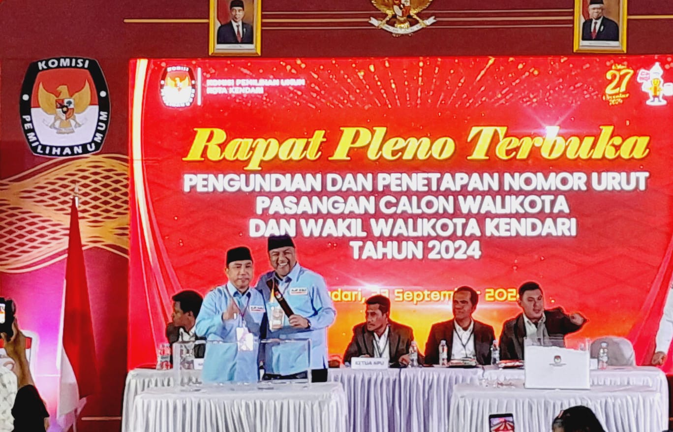 “Keputusan nomor urut para kandidat berlaku sejak tanggal ditetapkannya,” Ketua KPU Kota Kendari, Jumwal Shaleh, mengetuk palu menetapkan nomor urut pasangan calon Wali Kota dan Wakil Wali Kota Kendari.