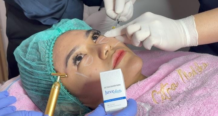 “Jadi, kegunaan dan manfaat dari produk JuveLook ini adalah membantu mengencangkan pori-pori, mengangkat kulit yang kendur, menghaluskan kerutan, dan mengembalikan volume wajah yang cekung seperti area mata dan garis senyum,” sambung dr. Citra.