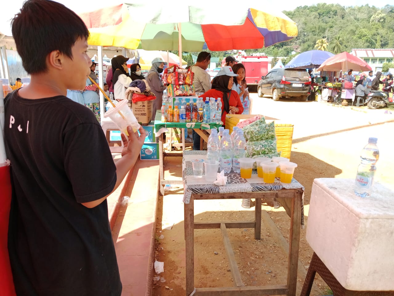 Barang jualan mereka berupa makanan jadi, seperti kue-kue, snack, dan minuman-minuman dingin diborong habis oleh ASR – Hugua yang dibagi-bagikan secara gratis kepada masyarakat yang datang menyaksikan kampanye pesta rakyat berkah.