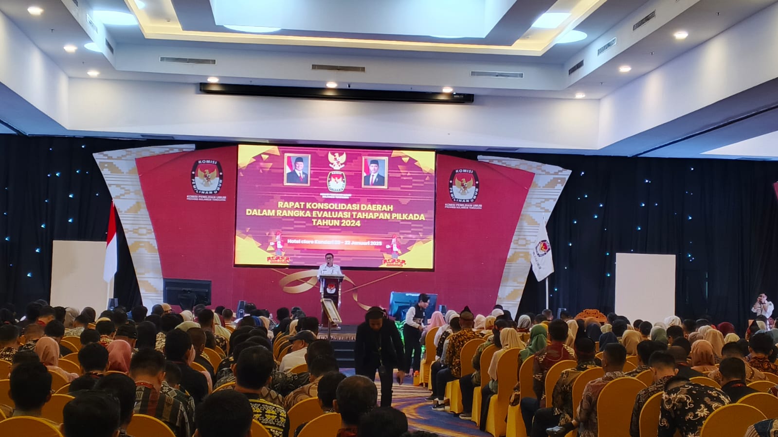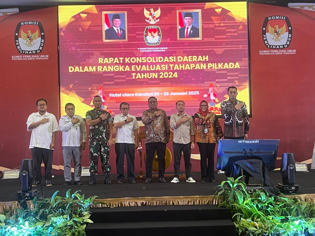 KOLOMRAKYAT.COM: KENDARI – Dalam rangka mengevaluasi pelaksanaan Pemilihan Kepala Daerah (Pilkada) serentak Tahun 2024 di seluruh wilayah Provinsi Sulawesi Tenggara Komisi Pemilihan Umum (KPU) Provinsi Sulawesi Tenggara menggelar Rapat Konsolidasi Daerah Dalam Rangka Evaluasi Pelaksanaan Pilkada Tahun 2024, bersama KPU Kabupaten dan Kota hingga Panitia Pemilihan Kecamatan (PPK) se- Sulawesi Tenggara yang dilaksanakan di salah satu hotel berbintang di Kendari, mulai Senin hingga Selasa, 20-21 Januari 2025.