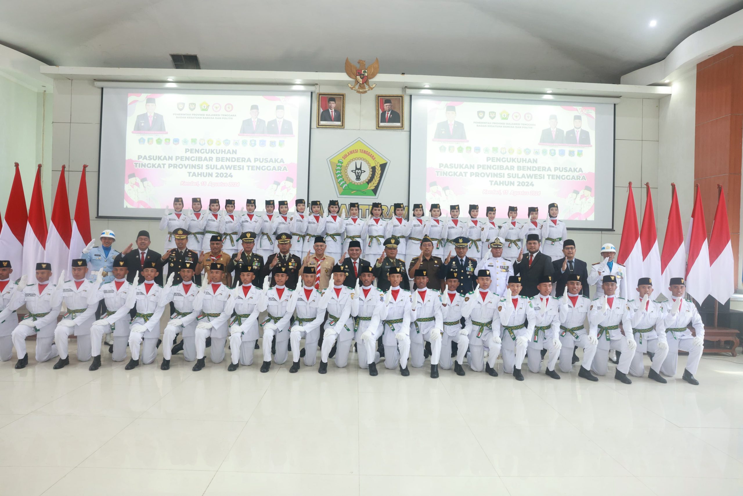Setelah Apel Besar Pramuka, Pj Gubernur melanjutkan kegiatan dengan pengukuhan Pasukan Pengibar Bendera Pusaka (Paskibraka) Provinsi Sultra yang akan bertugas pada upacara HUT Kemerdekaan RI ke-79 pada 17 Agustus 2024 mendatang.