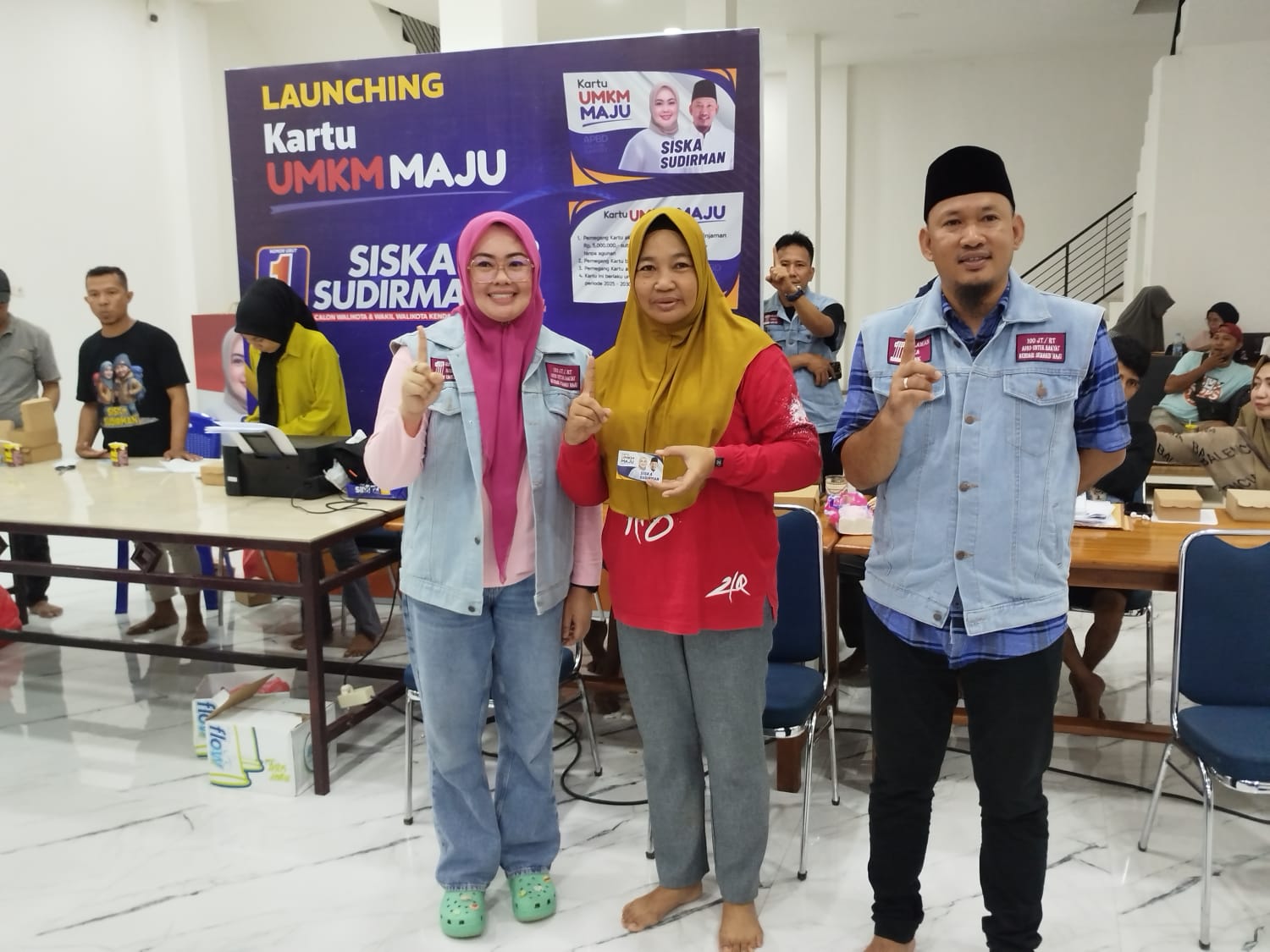 Peluncuran kartu ini ditandai dengan penyerahan kartu kepada dua perwakilan pelaku UMKM oleh Siska Karina Imran dan Sudirman.
