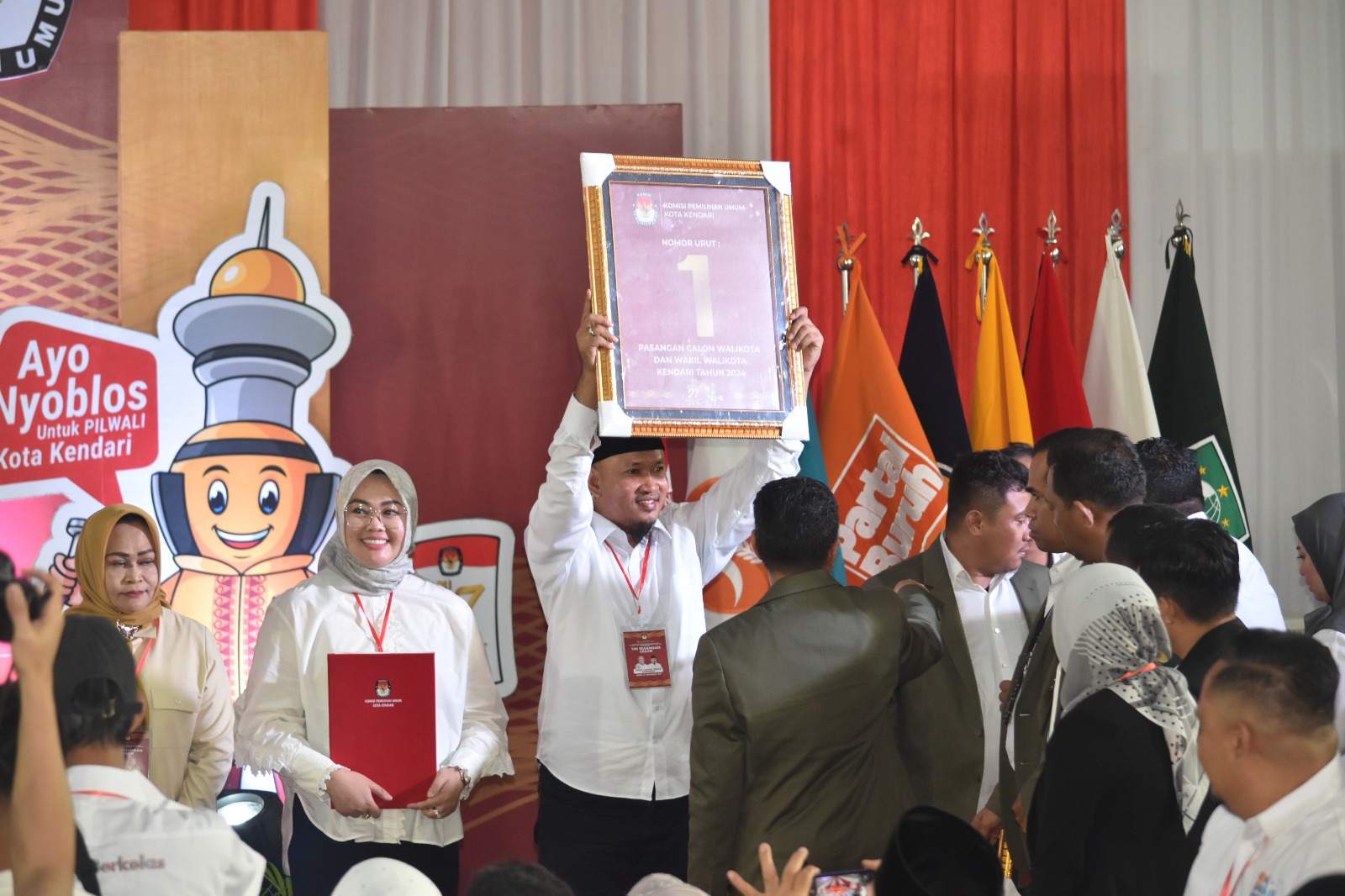 Pasangan Siska Karina Imran-Sudirman mendapatkan nomor urut 1 pada Pilwalkot Kendari 2024. (Foto: Ist/KR)