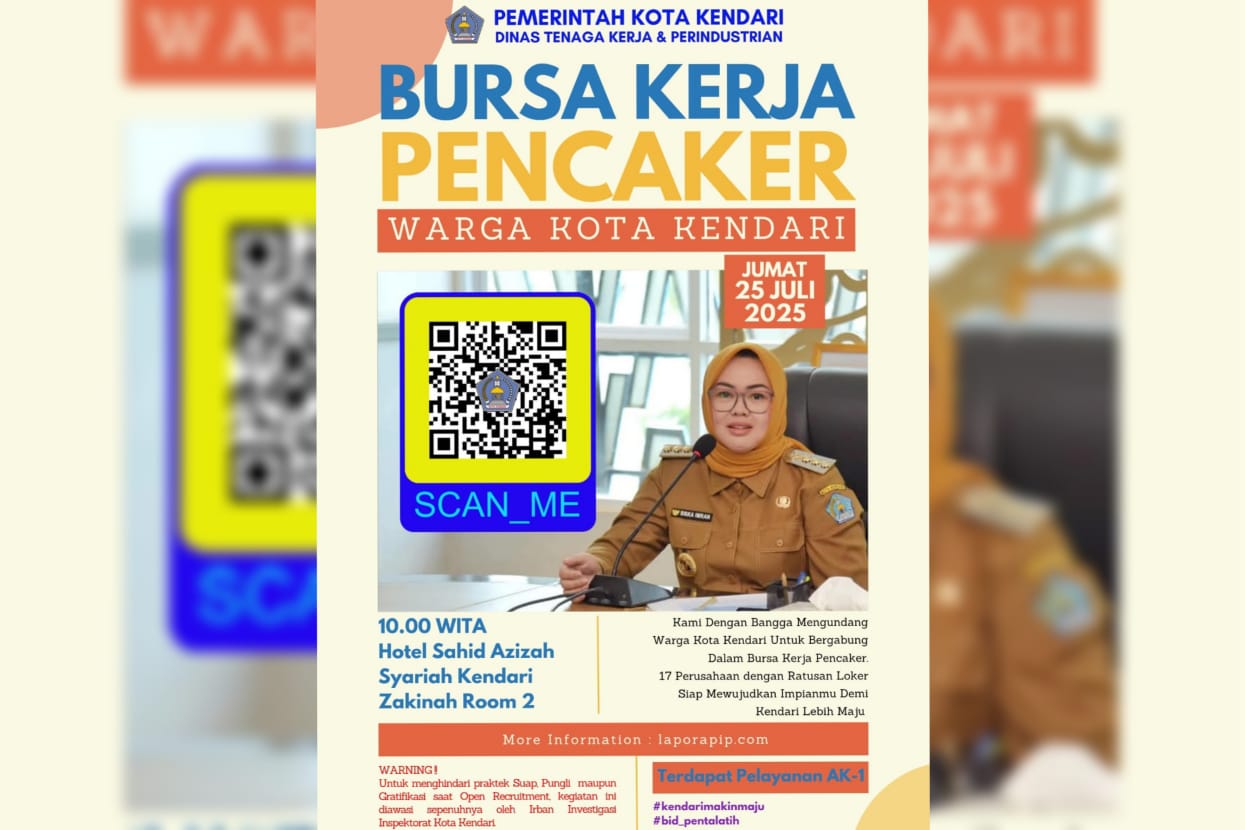 KOLOMRAKYAT.COM: KENDARI – Tekan pengangguran terbuka, Pemerintah Kota Kendari melalui Dinas Ketenagakerjaan dan Perindustrian akan melaksanakan penempatan pencari kerja (Pencaker) melalui bursa kerja yang akan digelar di salah satu hotel, pada Jumat, 25 Juli 2025