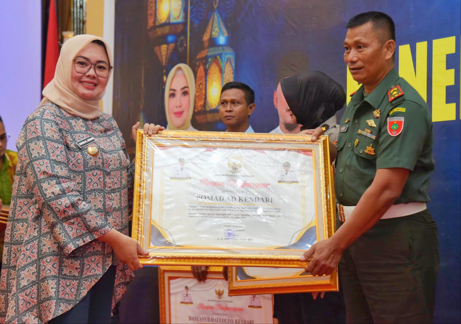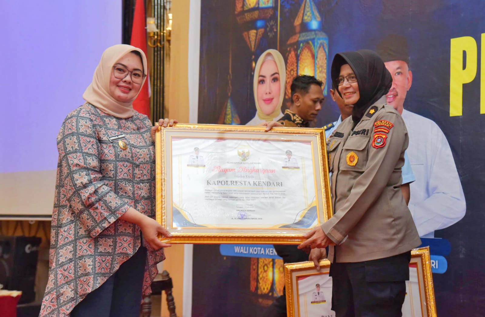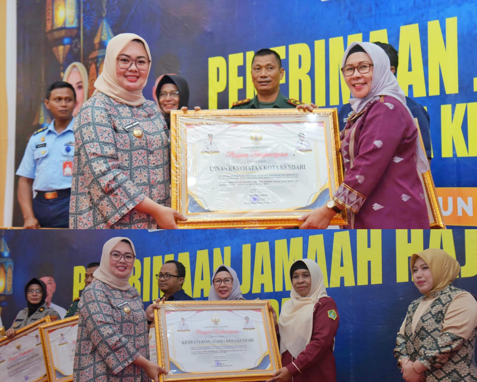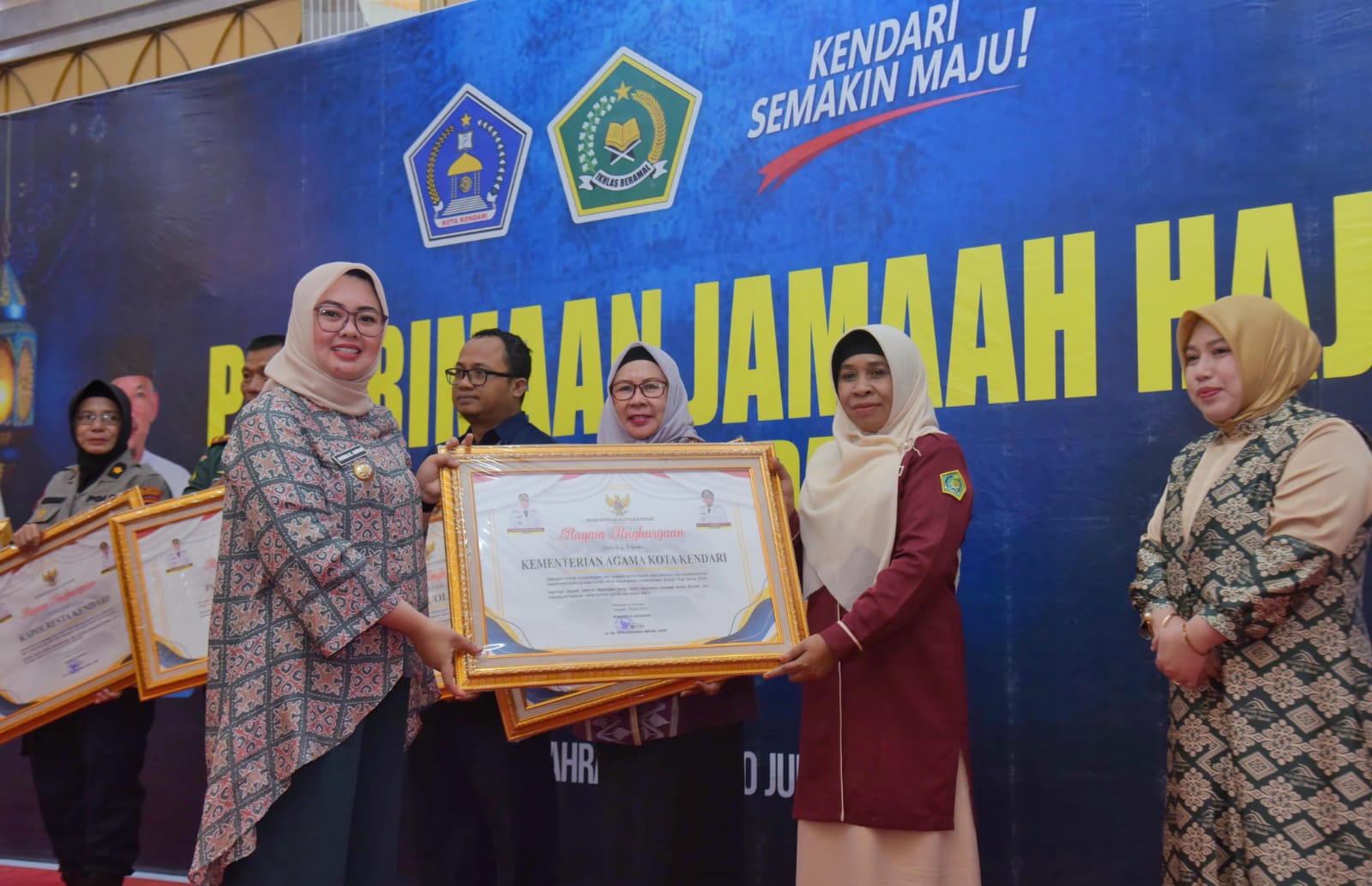 KOLOMRAKYAT.COM: KENDARI – Sebagai bentuk apresiasi dari Pemerintah Kota Kendari atas terselenggaranya pelaksanaan haji Tahun 2025/1446 Hijriah dan seluruh jemaah haji pulang dengan selamat hingga sampai di tempat masing-masing, Wali Kota Kendari Siska Karina Imran memberikan Piagam penghargaan kepada panitia dan Stakeholder pemerintah yang telah berkontribusi besar dalam pelaksanaan haji.