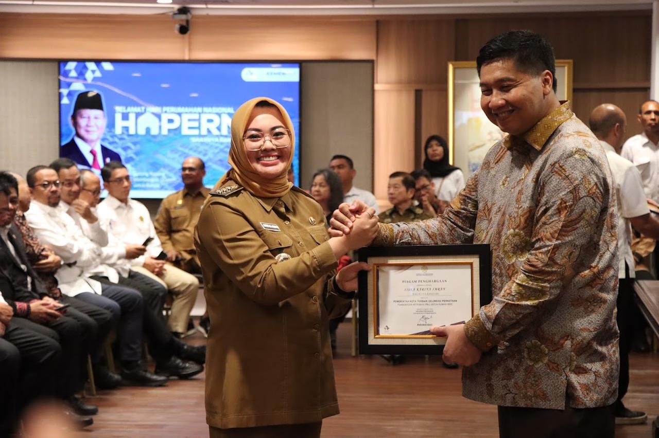 Penghargaan tersebut diberikan langsung Menteri Perumahan dan Kawasan Pemukiman Maruarar Sirait kepada Walikota Kendari Siska Karina Imran, di Kantor Kementerian PKP, Wisma Mandiri, Jakarta Pusat, Senin (25/8/2025).